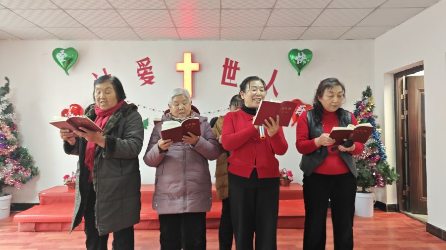 在距离市区十余公里之外临近马路的一间低矮平房里,却洋溢着一股热烈而喜乐的节日气息。这里,是城区教会下属的一个农村聚会点,今天,是聚会点圣诞感恩赞美会举行的日子。