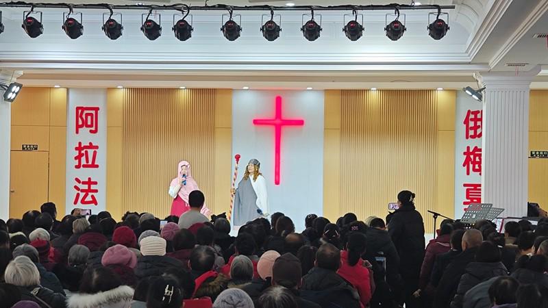 此外,一个讲述“暴脾气”姊妹如何在与教会弟兄姊妹的接触中开始反省自我,经历悔改得着重生的福音小品也给大家留下了深刻印象,在几位姊妹生动活泼的演绎中,生活在你我中间的基督徒形象活灵活现地展现在大家面前,而诙谐幽默的关中腔调也让小品在展现地方风情的同时,更是让台词的表现力变得更加真切。当表演的姊妹跪坐在台上流泪悔改,说出“不认识耶稣永远不会认识自己”的台词时,许多弟兄姊妹也被深深打动,“感谢神”“阿们”之声回荡在圣殿之中。