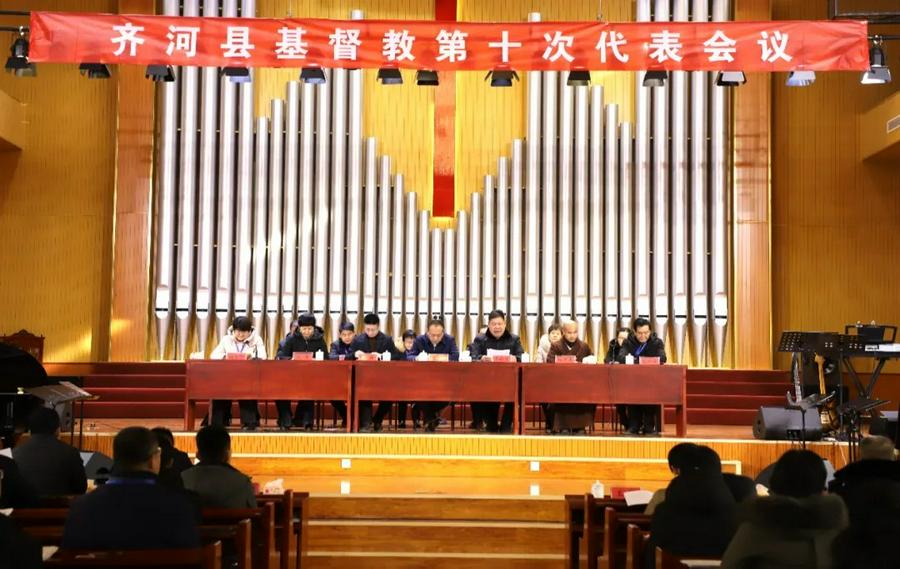 2024年12月19日,山东省德州市齐河县基督教第十次代表会议在齐河县基督教中心教堂召开,全县83名代表参加会议,县委统战部分管日常工作的副部长、县民宗局局长王强同志应邀出席并讲话,县民政局、晏城街道办等相关部门负责人,齐河县定慧寺释开东法师应邀出席,德州市基督教三自爱国运动委员会主任李西丁长老到会祝贺并致辞。
