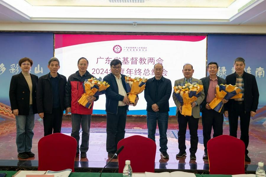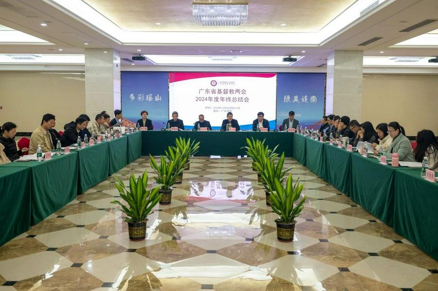 会议由省基督教三自爱国会主席郭云牧师主持。省基督教两会监事会监事长樊宏恩牧师在会上致辞。省基督教两会常务副主席兼常务副会长许洁平牧师代表省两会总结了2024年在提高政治站位、全面从严治教、推进基督教中国化等方面的成果。会议听取了省两会办公室、广东协和神学院、基督教沙面堂、基督教协和堂等部门关于2024年的工作总结。省基督教协会会长蔡博生牧师对各部门的工作汇报进行了总结和点评。