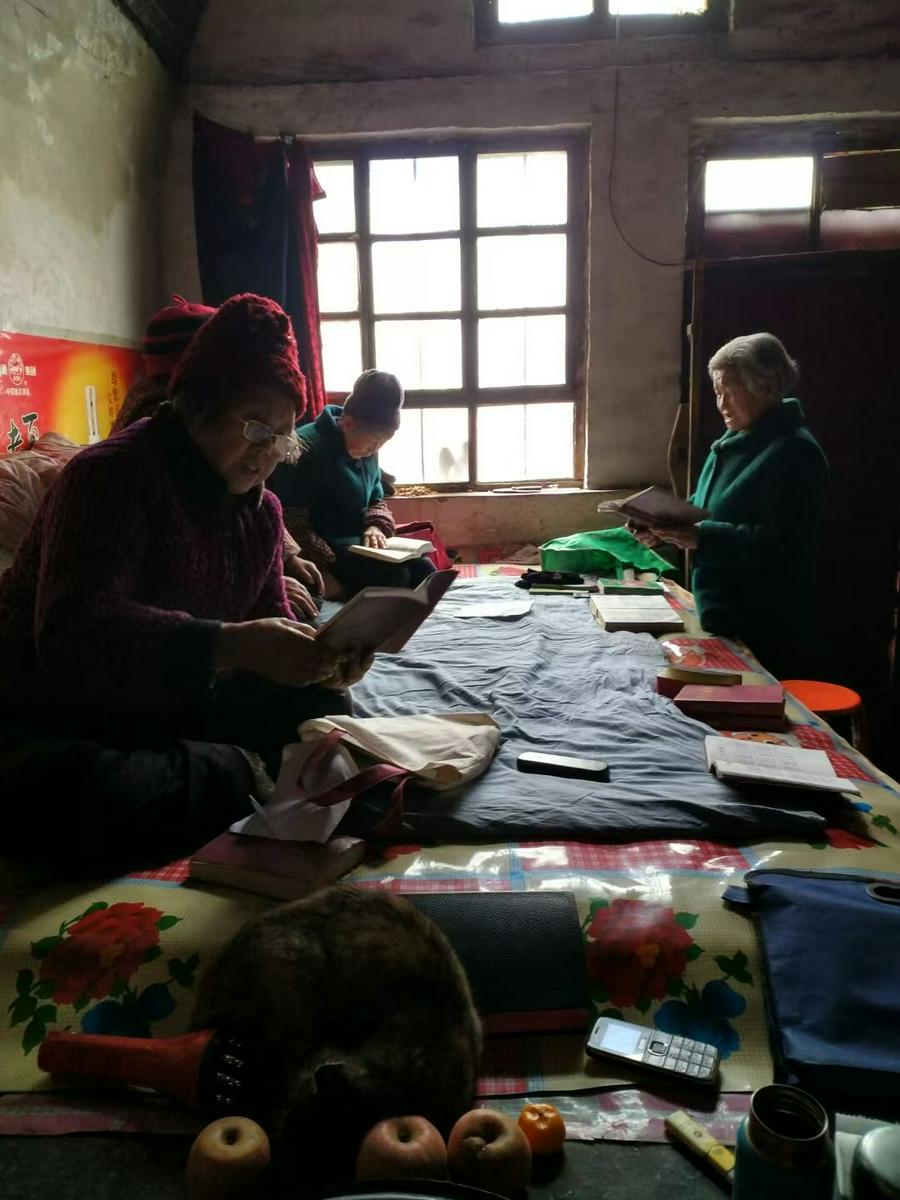 在她积极努力下,在桑原村建立了教会(我的岳母王香兰家)。她热心服侍,每个主日都要去教唱诗歌,讲道;还要到城里带回圣餐饼和杯,跟大家一起分领;还要看望有病的肢体,热心帮助代祷,鼓励劝勉;礼拜时还经常携带一些自己种植的蔬菜瓜果,与人分享。我曾经多次见她服侍的身影,无论是炎炎烈日下,还是冬日寒风中,她总是匆忙地来去,在乡间小路上奔走如风,不惧人的歧视嘲讽,甘愿为主做工。有时踏着泥泞,有时顶风冒雪,她总是按时赶到教会,端坐炕头上,用当地的方言土语宣读神的话语,解释圣经真理。她用接地气的话引人认识又真又活的神,引领大家一起歌颂赞美。尽管在这偏远落后的地方,福音被人所鄙夷,但她却勇敢为主作见证。年复一年,日复一日,她服侍着吕梁山深处这个偏远的地方,在教会尽了当尽的本分。尽管人数不多,但神的恩典却随着他们,也时常有蒙恩的见证。