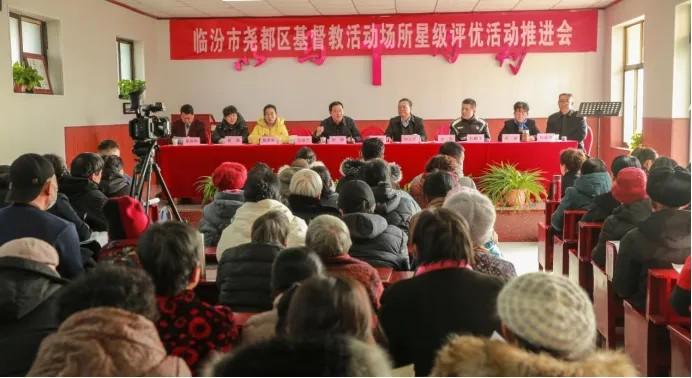 2025年1月10日,山西省临汾市尧都区基督教两会在东宜活动点召开基督教活动场所星级评优活动推进会,两会班子、场所负责人、以堂带点负责人及教职人员代表共110人参加了会议,市、区、乡镇等有关部门人员出席活动。