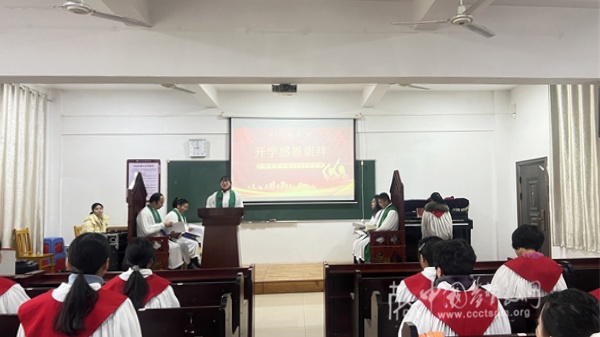 随后,学校在小礼堂举行2025年春学期开学感恩崇拜。教务长吴红英牧师主持,吴珊牧师以《在前行的路上》为题证道,鼓励师生们在新学期中坚守信仰,勇于前行,效法耶稣基督,以积极的态度迎接挑战,不断追求属灵生命的成长。