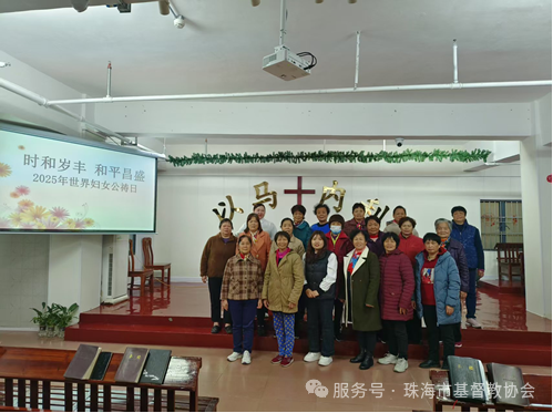 2025年3月7日,珠海市基督教梅华堂、香洲堂、南屏堂、三灶堂、乾务堂和平沙堂等举办了题为“时和岁丰 和平昌盛”2025年中国基督教会妇女公祷日的活动,活动由各堂的教牧同工主礼和分享。牧者们引用圣经约翰福音17章11节,以赛亚书2章16节,箴言31章17、20、31节等经文讲述主耶稣特别为门徒的合一祷告,鼓励姊妹们要谦卑、温柔、忍耐,在家庭和社会中有和平、和睦、和谐的美好见证。成为推进基督教中国化,与社会主义社会相适应的力量,为世界和平,和合共生发挥姊妹们的作用。