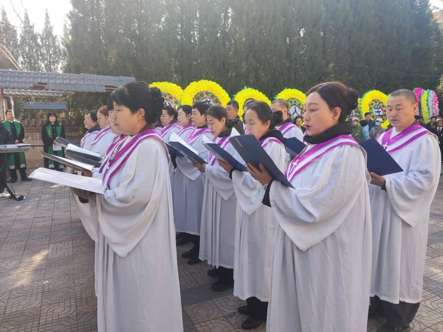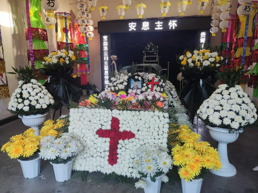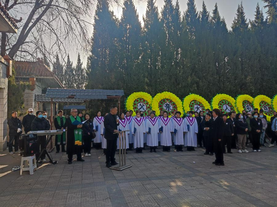 此后诗班献唱了《有一个地方》的诗歌,王家瑞姊妹也单独献唱了一首诗歌。杨森林牧师最后做祝福祷告。鼓乐声中,火化后的骨灰被妥善地安放。