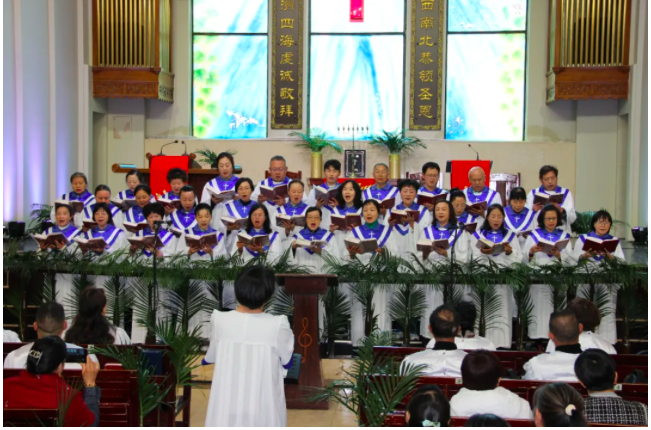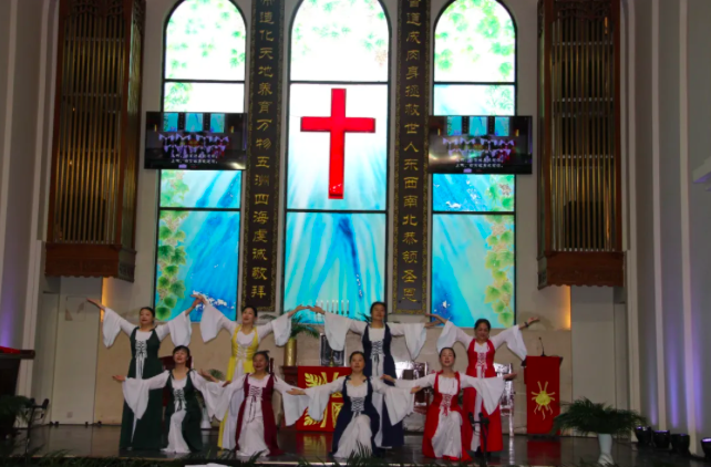 4月13日,在教会传统节日“棕枝主日”来临之际,三一国际礼拜堂通过祈祷、证道、献唱、舞蹈等形式隆重举行了四场棕枝主日崇拜,庆祝主荣进圣城。