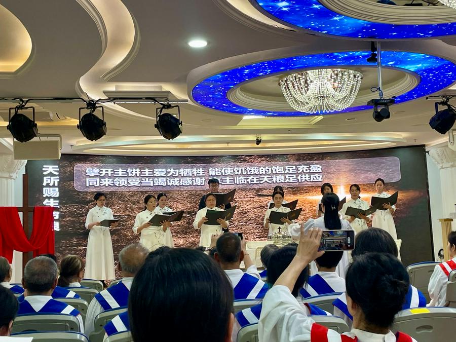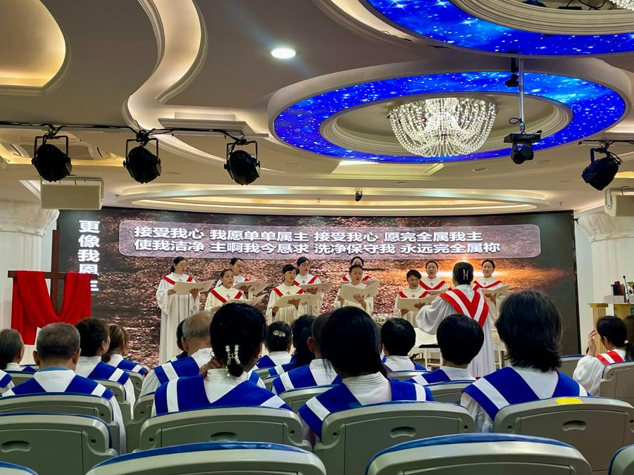 崇拜在《圣哉三一歌》的庄严旋律中开始,诗班队伍缓缓步入圣殿。随后,《万方团契歌》《回应主爱》《更像我恩主》等诗歌接连献唱,带领会众思想团契的真谛。