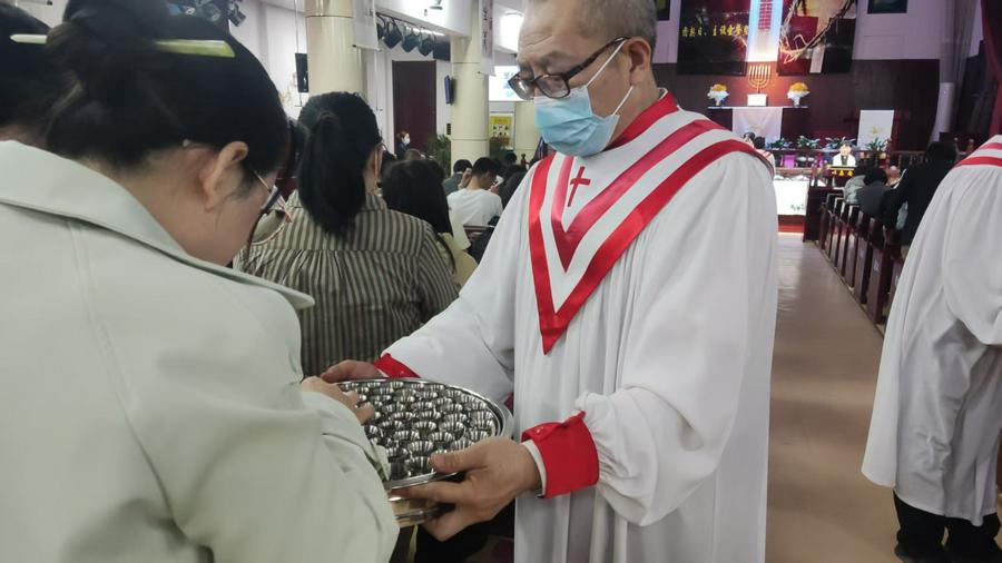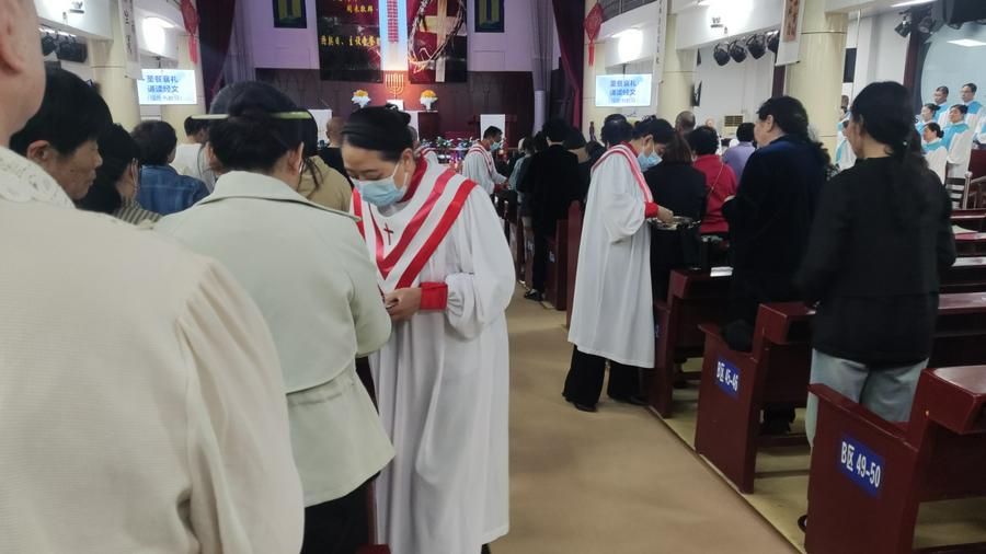 之后,负责同工陈丽长老主礼了圣餐礼。在省察劝勉中,她流泪简述在当年这个特殊夜晚主耶稣所设立最后的晚餐,并从教堂门厅悬挂的那幅《最后的晚餐》介入,带领大家默想:一是默想主设圣餐的终极意义,真正认识神的儿子牺牲救赎的大爱,回归两千多年前的永恒纪念;让主留下晚餐成为最美的纪念,永远铭记他的救赎恩典;二是面对最后的晚餐,凝视画面,看到各种人的不同表情,我们更深体会耶稣的慈爱怜悯,看到人性的软弱不堪,更好思想自己,省察我们在主面前的亏欠软弱;三是同席要同心,面对神的呼召,分享神的爱筵,我们靠着主悔改认罪,破碎自己,成为圣洁,讨主喜悦。求主的大爱吸引我们,在主立面竭力追求,效法基督,更新生命,做合神心意的儿女。