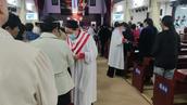 19:30,七声钟声响过,主礼人、证道人、圣餐主礼、襄理及诗班、执事等,身穿洁白圣礼服进入伴着殿乐缓步进入。杨森林牧师主礼,首先问安。会众齐唱《近主十架歌》。谢春兰长老献上代祷。
