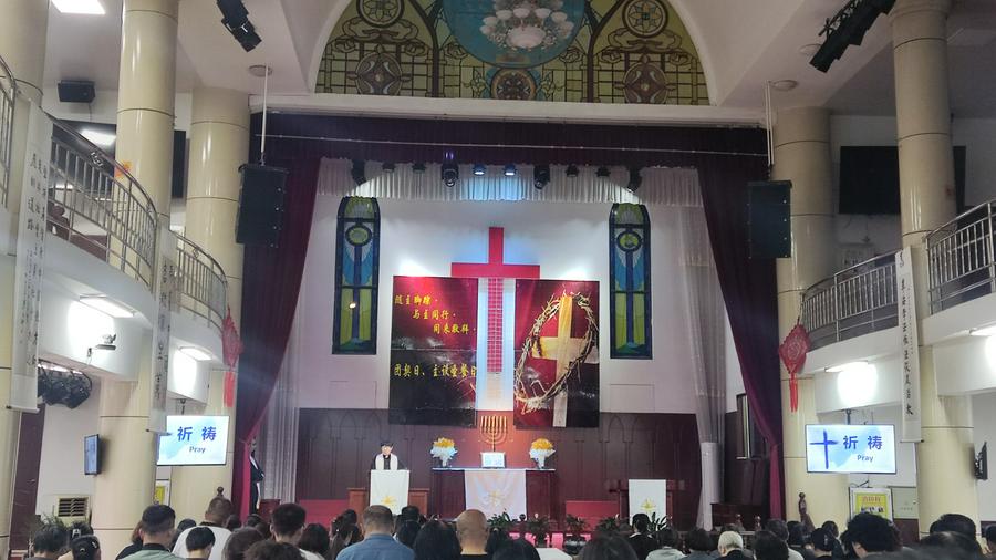 4月17日,是受难周第五日,山西省临汾市尧都区基督教会城区教堂举办了每日受难周默想活动。当晚又隆重举行了“纪念团契日,默想最后晚餐”感恩崇拜。