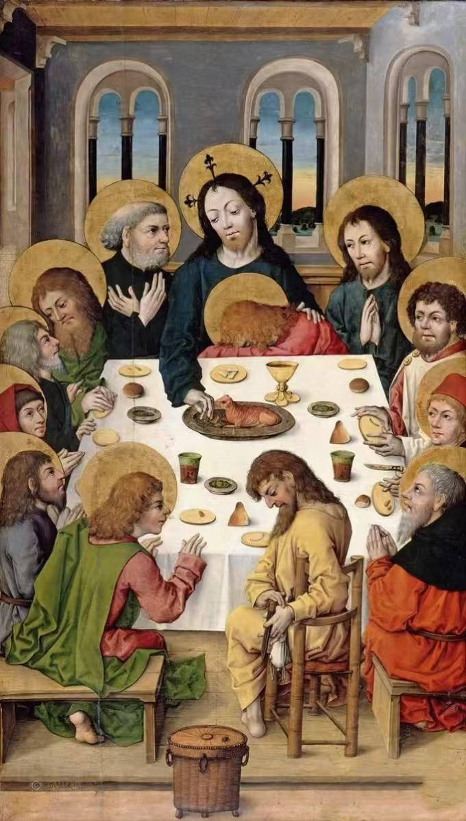 这最后的晚餐啊,也是永远的晚餐。数千年一直在喂养着信祂的人,永不饥渴、永不饥饿,身心灵、灵魂体都饱足、都健壮;这最后的晚餐啊,早已成为时间的酵母。在炮火连天的战乱中、在地震和海啸中、在瘟疫和灾难中,总有圣体的光穿透黑暗。孩子们在难民营分食的面包,总有一片带着永恒的暖意;战壕里士兵们传递的酒壶,总在某个瞬间泛起紫红色的涟漪,因着祂是和平的君、永生的王。