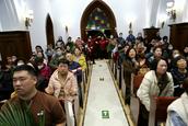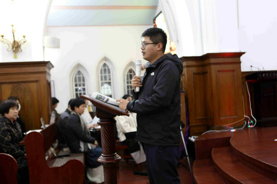 4月18日的傍晚,这所奠基于1928年的圣殿,在四月的春风中依旧透着庄重而优美,充满了三一真神上帝垂顾的慈爱。圣剧还没有开始,剧组的演职员就开始在预备,服务的同工不到五点就来到教堂,以青年信徒为主的弟兄姐妹们就陆续地从大连的各个地区来到这里,用虔敬的心来朝拜主。大家在会前读经、祷告、赞美、分享,安静在基督里,等候欣赏描写、重现主耶稣基督在十字架受难和复活的情形。