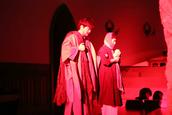 此时此刻在舞台上展现给人们的是坟墓前的三个马利亚、旅人甲、乙和主耶稣。