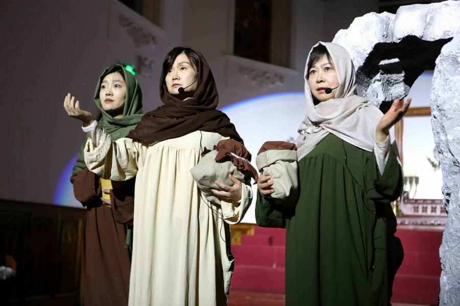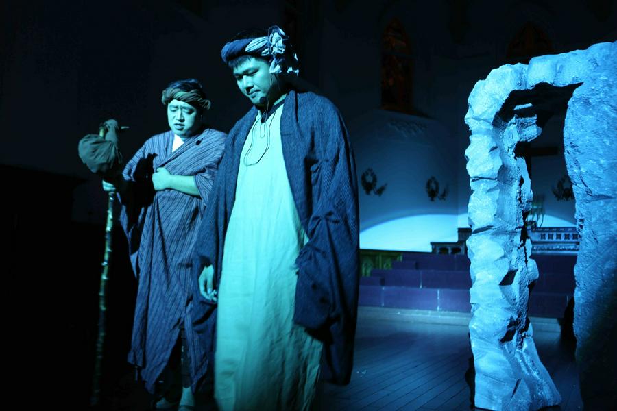 当李昌禄教士宣布开始后,圣剧在教堂内缓缓拉开帷幕,仿佛时光倒流,将观众带回到那个具有永恒属灵意义的时刻。