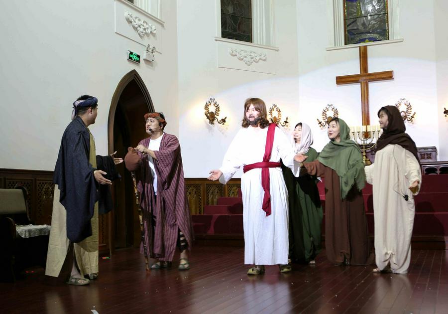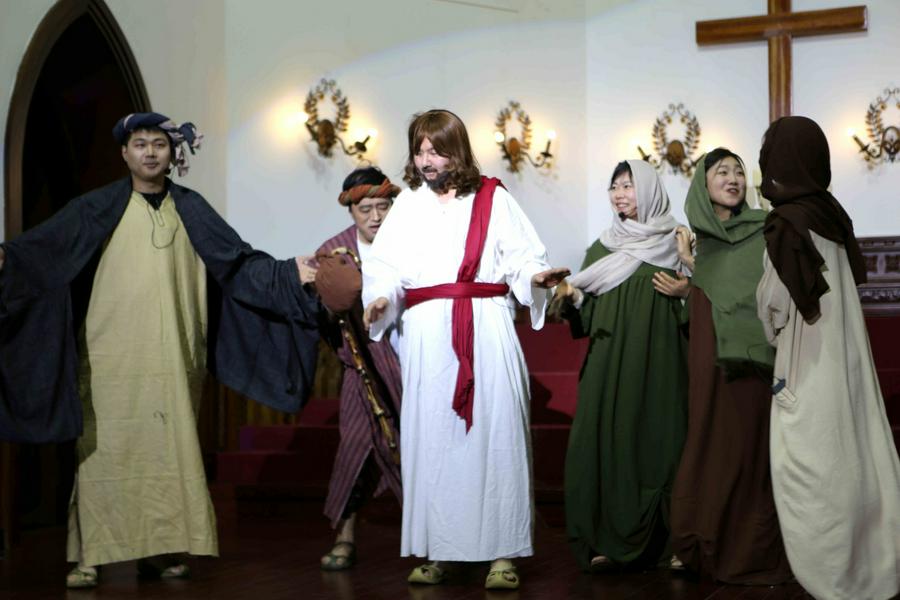 在主耶稣基督背负十字架受难日的悲壮时刻,当圣周第六天的余晖洒满具有近百年历史的大连玉光堂的哥特式建筑金色的十字架上,在主的圣殿一场震撼人心的信仰盛宴正悄然拉开帷幕。这里有一群爱主爱教的年轻人,以青春的名义和活力向永恒发问,用他们坚定的双手,火热的心,为受难日送上了一份独一无二的崇拜、献祭:五幕大型圣剧《生命的回转》。