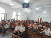 在历史的长河中静静流淌百余年的南康教会,在这个充满希望与喜乐的复活节再度彰显主的荣耀,他们举办了主日崇拜活动。北海市基督教三自爱国运动委员会副秘书长、本堂负责人朱发明牧师带领会众恭读圣经罗马书6章1至11节经文,以“死而复活的生命”为题证道,诗班献诗108首、110首(新编赞美诗)。朱牧师证道结束后,进入了充满温情与关怀的环节——分享复活蛋和瘦肉粥。信徒们相互传递着精心准备的复活蛋,那色彩斑斓的蛋壳如同承载着希望与祝福的小舟,在他们手中传递着复活节的喜悦。每一颗蛋都象征着主耶稣基督从死里复活的奇迹,而热气腾腾的瘦肉粥,则是大家在神圣节日里共同分享的美味佳肴。