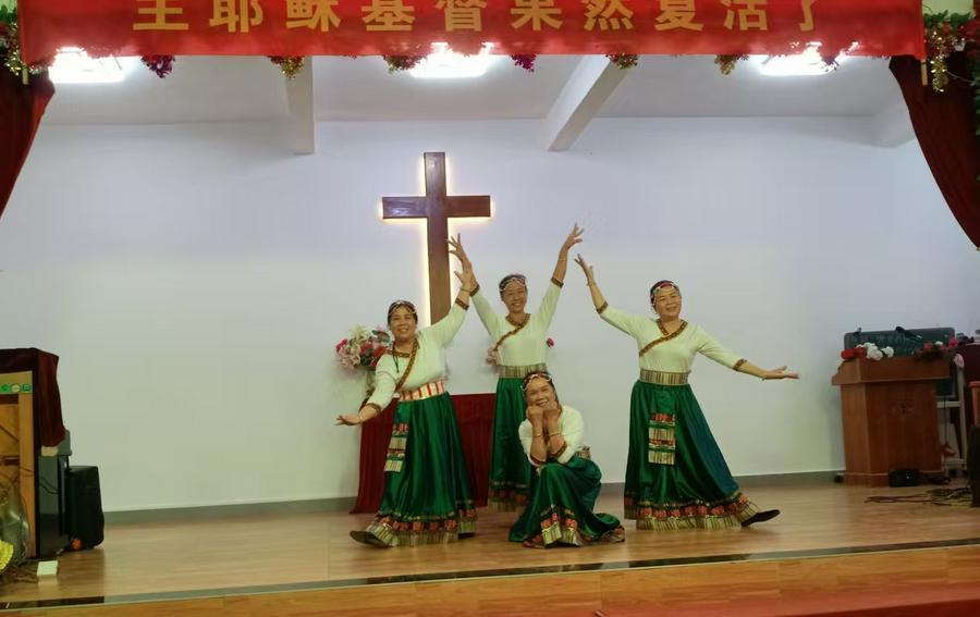 接着常乐堂表演了节目,以欢乐歌声、优美舞蹈欢迎主的复活。