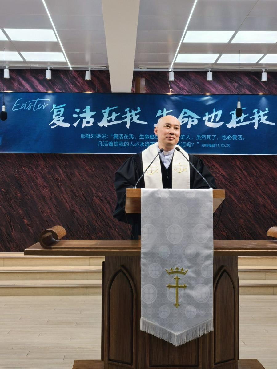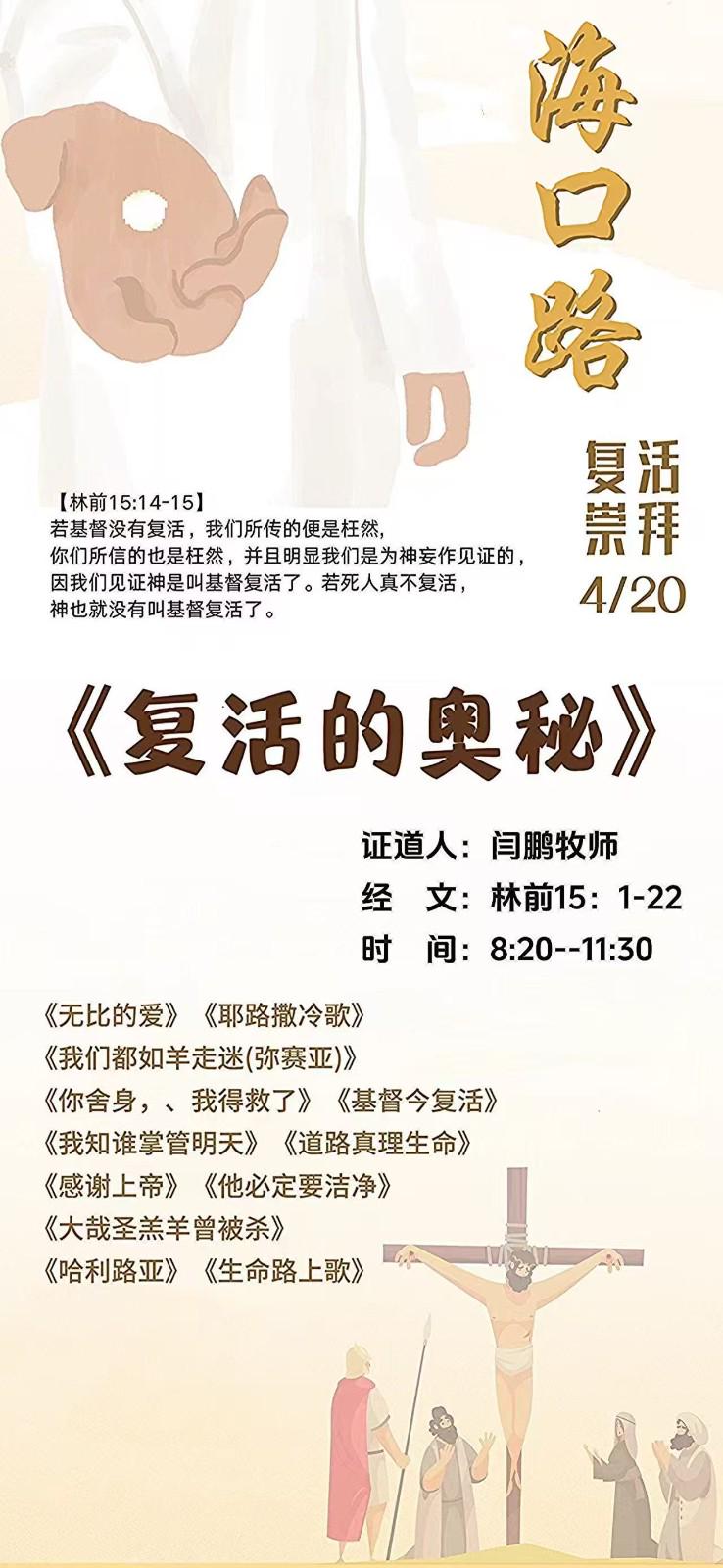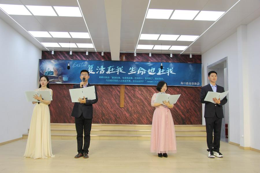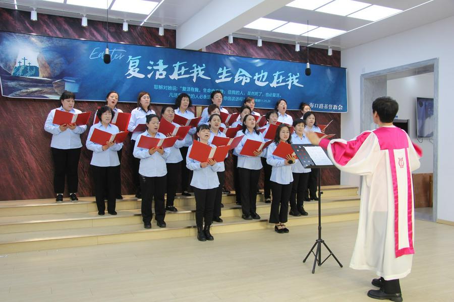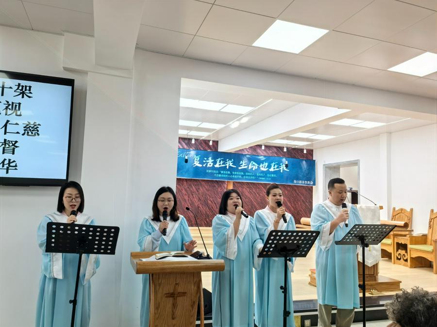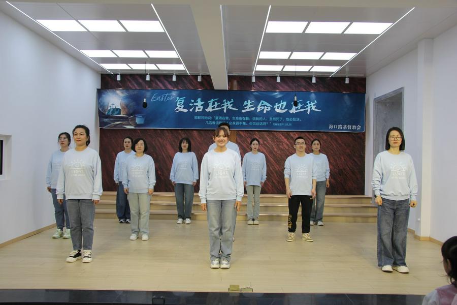 2025年4月20日复活节,吉林省长春市海口路基督教会举行了复活节主日崇拜聚会。教会负责人闫鹏牧师为主证道之后,教会的各个班组、团契在圣殿赞美。诗班献唱《主耶稣已复活》、青年团契大合唱《十架高悬日》《复活》、六区聚会点合唱《加略山的爱》、富奥聚会点合唱《主复活歌》、祷告组舞蹈《热情的新郎》、银湖聚会点大合唱《复活的主》《耶稣全得胜》、荣归班大合唱《主复活》、新生命学习班合唱《主啊 我还相信你》、探访组大合唱《歌颂复活主》等三十个赞美诗歌、舞蹈等节目献给荣耀的主耶稣基督。