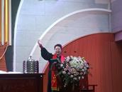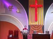 上午10:00,开始了易莲梅长老的一堂证道。易长老以圣经马太福音28章16—20节的经文为依据,围绕主题“认识基督教的圣礼”,用了一个多小时,讲了两部分内容:一、洗礼。1. 洗礼是主耶稣的命令(太28:16—20);2. 洗礼是归入主耶稣的死与祂一同复活(罗6:3—6)。二、圣餐礼。1. 圣餐是爱的筵席;2. 圣餐是接纳的筵席;3. 圣餐是圣化的筵席。