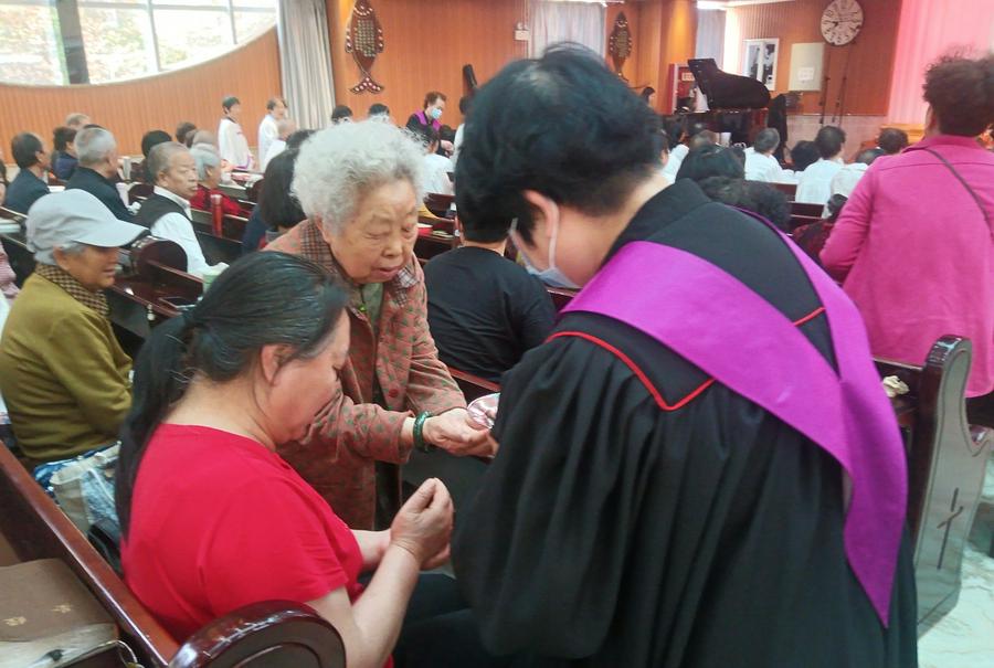 上午11:00,易莲梅长老主持了复活节圣餐礼。一是易长老在两位姊妹协助下,奉主的名为到场初信的9位弟兄姊妹进行了庄严肃穆的施洗。二是在全体会众轻唱《纪念恩主歌》的歌声中举行了圣餐礼的掰饼和举杯礼仪。