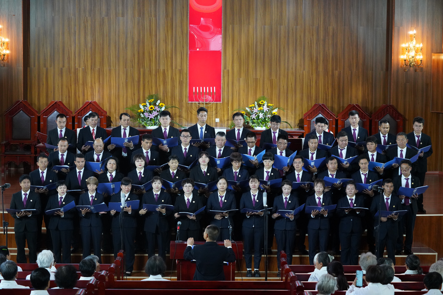 当天正值礼拜天,学员们参加了北辰基督教堂上午的礼拜。崇拜中,学员们献唱了两首圣诗《古旧十架》《因祂活着》,优美的四声部合唱回荡在教堂,表达着他们对上主的虔诚敬拜。