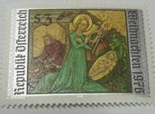 在信仰的维度上,这些微型画布堪称浓缩的圣经和基督教大事记。邮票的画面构图精巧,主体形象突出,布局合理。作者巧妙地运用了绘画技巧,将主题元素巧妙地融入整个画面之中,形成了一个和谐统一的视觉整体。联邦德国1967年发行的三联票以哥特式彩窗的绚烂笔触,将耶稣受难、复活、升天的救赎三部曲凝固成金箔般的永恒;西班牙1973年的圣母领报节邮票,用洛可可风格的柔美曲线勾勒出天使加百列降临时的神圣震颤,玛利亚手中未及合上的经卷页角微微翘起,仿佛还带着祈祷时的体温。最令人动容的是扎伊尔的四枚邮票:牧羊人看见那以色列之星、耶稣的父母带着祂在回家的路上、耶稣的诞生等,从整体来看色彩艳丽、栩栩如生。