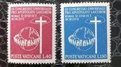 这里有两枚梵蒂冈1967年10月至18日召开的“世界主教代表大会”纪念票,堪称神学与科技的二重奏:十字架化作经纬线缠绕地球,这种"以十字架丈量世界"的隐喻,红色背景的火热邮票将大使命铭刻于方寸之间,蓝色背景的十字架邮票彰显“上帝之蓝”的尊贵。