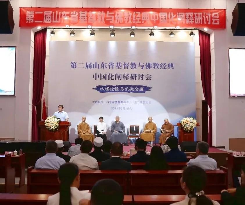 5月15至16日,第二届山东基督教与佛教经典中国化阐释研讨会在济南举行。本次会议由山东省基督教两会、山东省佛教协会主办,山东神学院、山东湛山佛学院协办。省委统战部二处包磊副处长,省民宗委宗教一处三级调研员逯明霞,省民族宗教委宗教二处韩成副处长,省基督教三自爱国运动委员会主任、山东神学院院长董美琴牧师,省佛教协会会长、山东湛山佛学院院长本悟法师出席会议。相关专家学者、佛教、道教、伊斯兰教、基督教团体负责人及山东神学院师生共200余人参会。