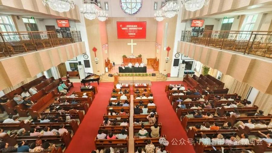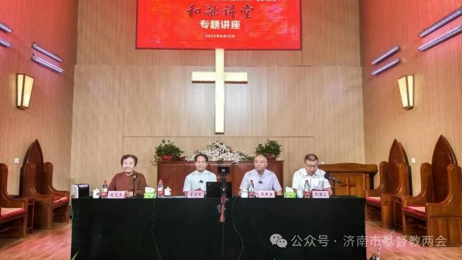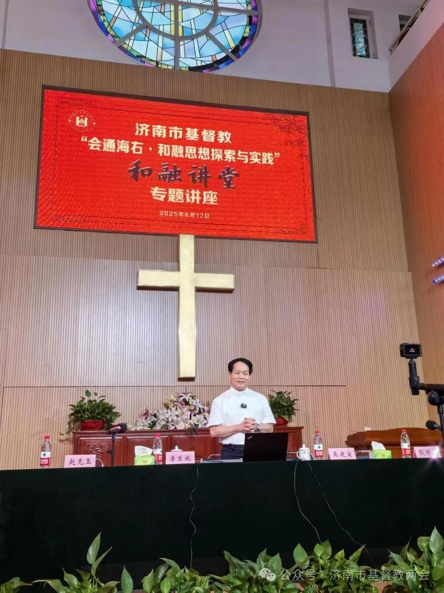 6月12日上午,山东省济南市基督教“会通海右·基督教和融思想探索与实践”之“和融讲堂”专题讲座在裕忠里教堂成功举行。省基督教两会顾问吴建寅牧师应邀出席并讲话。市基督教三自爱国运动委员会主任赵克玉同工出席并讲话。市基督教协会会长段国山牧师主持讲座。