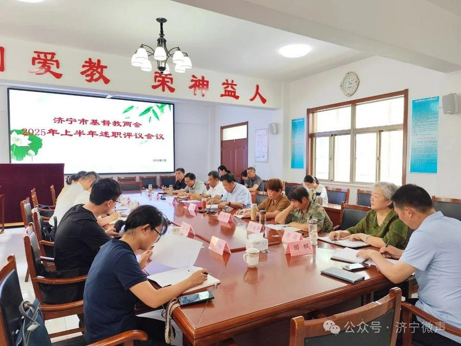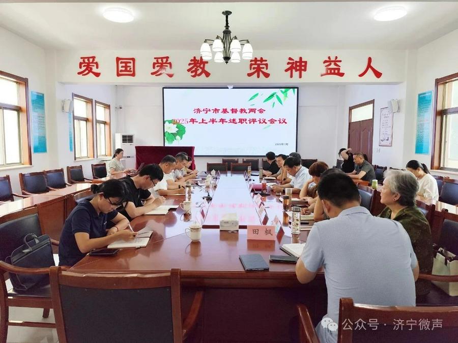 2025年7月11日,山东省济宁市基督教两会举行了上半年述职评议会。市委统战部副部长、市民族宗教局局长杨广喜和宗教工作科负责同志受邀出席会议。全国政协委员、中国基督教协会副会长、山东省基督教协会会长、济宁市基督教两会主任(会长)高明牧师,副主任(副会长)孔祥玲牧师、李建华长老、赵秀芳教师、万福华长老、秘书长(总干事)田枫教士、监事刘敏长老,市政协常委、黄家街堂会事工负责人、怀恩堂主任唐莉牧师,黄家街教堂部分信徒代表参加了会议。会议由高明牧师主持,市基督教两会班子成员进行了述职,与会人员对市基督教两会班子成员进行了民主测评,杨广喜部长作了点评讲话。