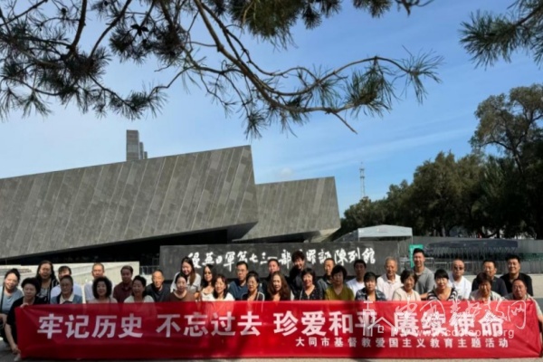 为纪念中国人民抗日战争暨世界反法西斯战争胜利80周年,2025年8月27日至28日,山西省大同市基督教三自爱国运动委员会组织教牧人员及广灵、新荣、左云县重点堂点负责人30人赴黑龙江省哈尔滨市开展爱国主义教育活动。大同市委统战部、平城区委统战部相关同志应邀参加。