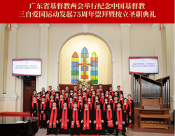 9月12日,广东省基督教两会在广州基督教沙面堂举行纪念中国基督教三自爱国运动发起75周年崇拜暨按立圣职典礼。广东省基督教两会领导班子、常务委员、接受按立圣职的同工及信徒共200人参加。