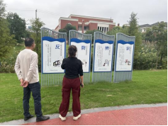在西线,江阴设立户外宣传阵地,在人流量集中的超市广场、公园布置了醒目的反邪教宣传栏,创新设计了汉服儿童人脸镂空拍照板、反邪知识问答转盘等互动装置,让群众在参与中学习反邪教知识。