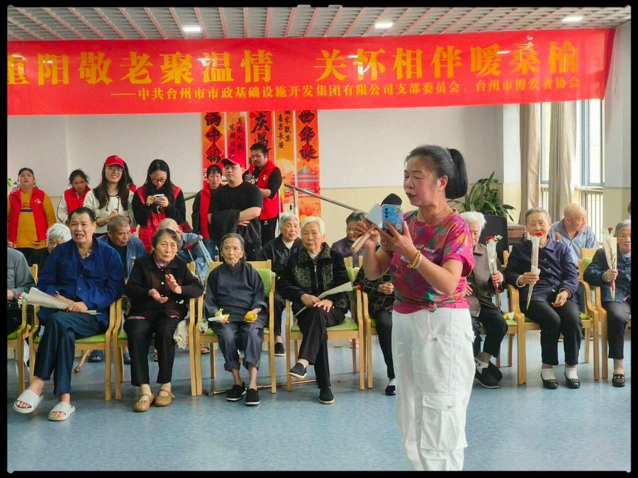 金菊送爽,丹桂飘香。在重阳节来临之际,为营造尊老、敬老、爱老、助老的良好社会风尚,2025年10月28日下午,台州市博爱者协会晨光志愿服务队走进椒江好时光康养院,举办了以“重阳敬老感恩心,关怀相伴暖桑情”为主题的慰问演出活动,为那里的老人们送上了节日的祝福与温暖的陪伴。