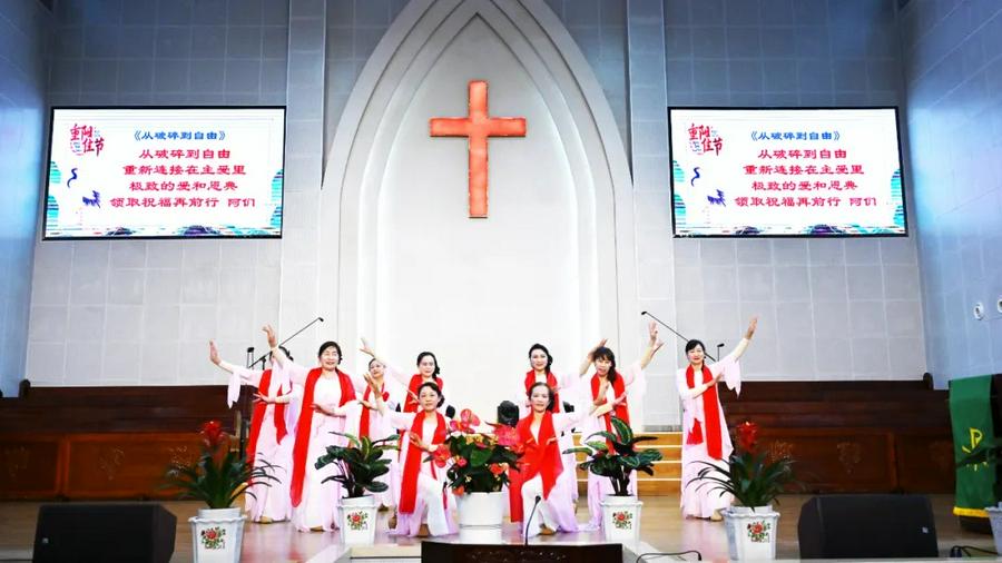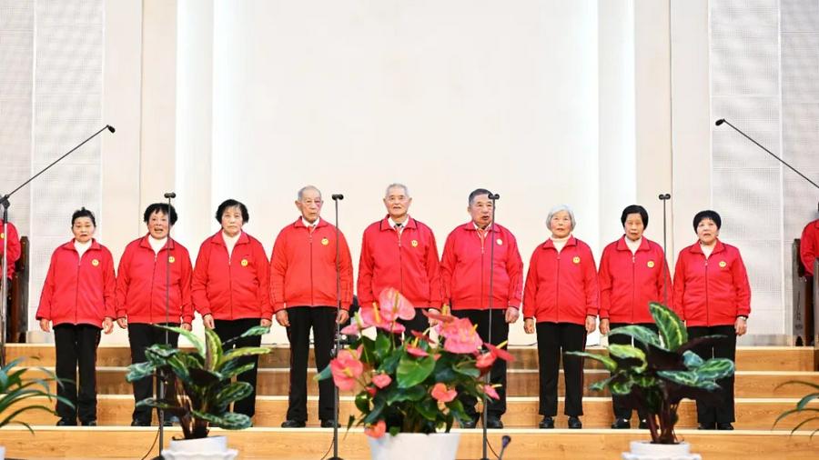 证道结束后,教堂的弟兄姊妹献上了精心编排的节目,以表达对主的感恩与赞美。其中,有九位80岁以上老人献诗。老年信徒代表也作了感恩分享,鼓励大家继续发挥生命余热,荣神益人。