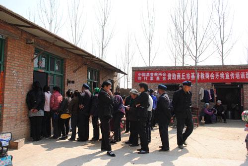 2011年3月28日,“河南省商丘市农村牙病防治宣传”项目的第7期活动在商丘市梁园区闫洼教会如期开展。此项目作为香港那打素基金第十四期资助项目,主要目的是通过在商丘市中心地带的十个乡镇开展牙病宣传防治项目,建立一个能够长期为贫困人群提供高质量牙科服务的宣传防治中心,将牙科疾病的预防和治疗普及到民众中去,从“牙”开始,改善他们的生活质量。