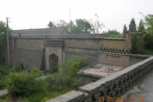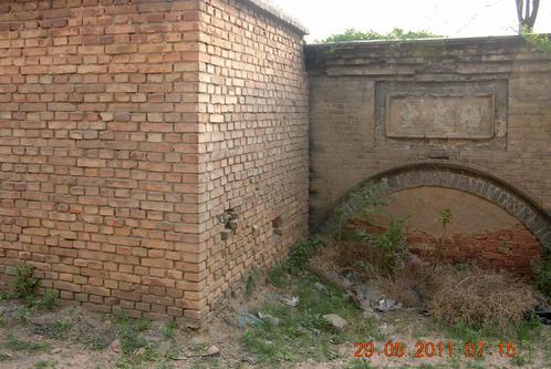 沿着福音堂现址东墙外向南而行,左侧是下落的断崖,右侧便是古色古香的福音堂旧址了。在现今的东墙入口右侧近百米远的围墙上,依稀可见当年的福音堂入口,圆拱形的门洞已被砖块封住,“福音堂”三个字依然清晰可见。