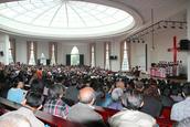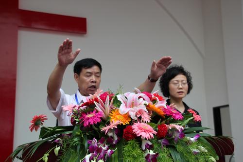 最后,绵竹市委常委、市政协副主席、市委统战部阎敏部长代表绵竹市委、市政府对所有帮助教会灾后重建的爱心机构、教会、以及上级主管部门表达了最诚挚的感谢,他指出,绵竹教会建堂小组把握机会、吃苦耐劳、负重登攀,创造了奇迹,为广大信教群众提供了宽敞明亮的聚会环境,实实在在为信教群众办了一件好事。新教堂为改造城市风貌、美化城市环境作出了特有的贡献。他表示,对教会的第二期的工程,市委统战部和市民宗局会将一如既往地给与教会鼎立支持。