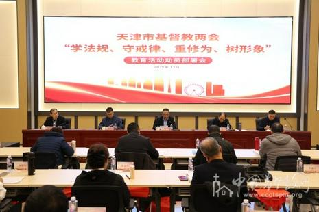 2025年11月17日,天津市基督教两会在市民族文化宫召开“学法规、守戒律、重修为、树形象”教育活动动员部署会,正式启动全市基督教界主题教育活动。此次活动在庄严的国歌声中开幕,市基督教两会班子成员、监事会监事、全体教牧人员及各堂点负责人、核心同工百余人参加,市民族宗教委及市基督教工作秘书处相关负责同志列席会议并讲话。