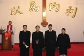 朱致国牧师、汪振仁牧师和王要恩牧师在神圣的按立典礼上为4位毕业于中南神学院的教会青年同工按手、祝福、配圣带,并赠送圣经作为托付和纪念。4位按立为牧师的同工是:十堰市教会的杨繁华、丹江口市教会的付守林、潜江市教会的李传清和赵守国。这一次按牧又为湖北教会增添了新的教牧力量,为建设好湖北教会、创建和谐教堂将起到积极作用。