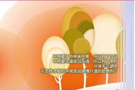 世界因为彼此的不同而充满魅力,婚姻也因为彼此的不同而充满惊喜。好的婚姻关系,不同的个性和行事方式可以做到彼此滋养和润泽,并因此孕育出健康美丽的爱情之花。“冲突管理”的学习,就是要让婚姻中的我们学会不惧怕冲突,学会在冲突中解决问题,通过冲突找到两个人和谐共处的方式,相拥令人艳羡的爱之双人舞。