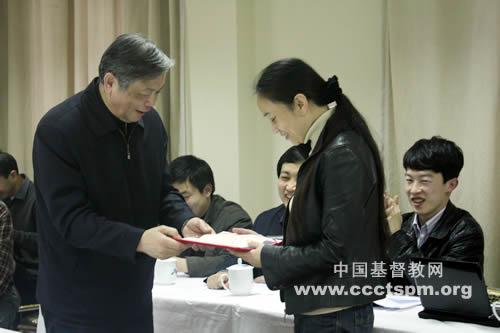 会上,由傅先伟长老向各位同工颁发了《天风》“特约撰稿人”聘书,此次聘期为二年,王芃、陈驯等15位来自神学院校的教师、有关基督教两会的同工及教会牧者受聘。