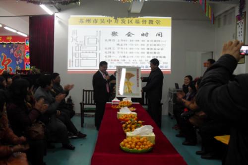 建湖县三自爱国会主席张玉春长老非常感恩的对孙红雷老师说:“此行先后去了杭州崇一堂、苏州独墅湖教堂,和吴中开发区教堂,各有特色,各有优势和长处,但是当来到吴中区教堂时,发现这里虽然是租的厂房,却深深地感动了从建湖来的弟兄姐妹,这里特别温馨,有家的感觉!”