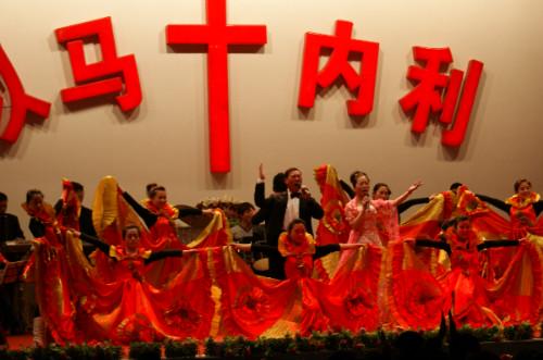 演出以《哈利路亚》开始,将近两个小时的节目中有相声、舞蹈、快板、独奏、音乐剧等。特别是情景剧《主背负十字架》,再现主耶稣为人类的罪被鞭打,受痛苦的场景,触动每一个弟兄姐妹的心灵,台下弟兄姐妹多有被感动,潸然泪下。歌曲《远方的亲人》表达了在基督里面的彼此思念。《生死线上》唤起每一个弟兄姐妹传福音的热心,去拯救灵魂。《祝福中华》唱出了弟兄姐妹对祖国的热爱。演出过程中民族乐器和电声类乐器搭配使用,使整场演出气势恢弘。