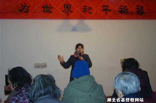 2012年3月2日即世界公祷日下午2点到五点,湖北省基督教感恩堂一楼小礼堂举行了祷告会。本次祷告会有本堂主任牧师王要恩牧师主领,陈雪侠教师代表姊妹代祷,与会信徒约100人。
