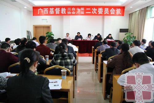 广西基督教三自爱国运动委员会第十届、协会第六届二次委员会全体会议于2012年3月27日在南宁市召开。45位委员出席本次会议。广西自治区宗教局梁柳宁副局长、盘誉春处长、吴汉时调研员等领导莅临会议。