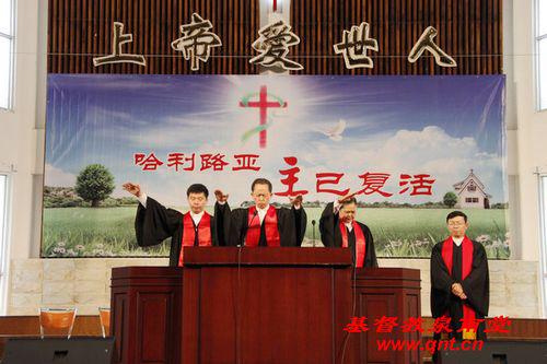复活节主日崇拜,最后在牧师的祝福中圆满结束。