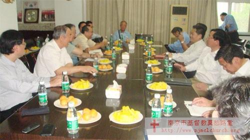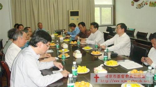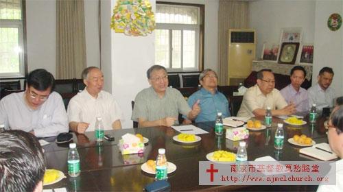 2012年5月8日(礼拜二)上午九点,新加坡及环南大主教周贤正主教率团一行十位来南京市基督教访问和座谈。先在莫愁路堂参观,该堂新按立的王雪峰牧师作了简介。然后在南京市基督教两会二楼会议室座谈。