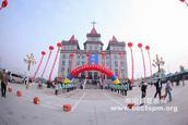 东营市基督教堂是一所规模较大的教堂,总占地面积(包括尚待建设的附属建筑)为20亩。教堂主体建筑长48.5米,宽33.5米,高度为40米,总建筑面积4933.61平方米。能同时容纳2000余人聚会。