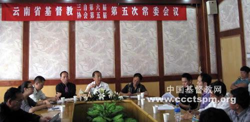 云南省基督教两会六届五次常委会议于2012年5月18日,在昆明海鸥宾馆召开,云南省基督教两会常务委员、副秘书长、副总干事以上31位同工,围绕全省基督教工作重心,积极学习、交流、讨论,同心合意,为做好云南教会工作出谋划策。